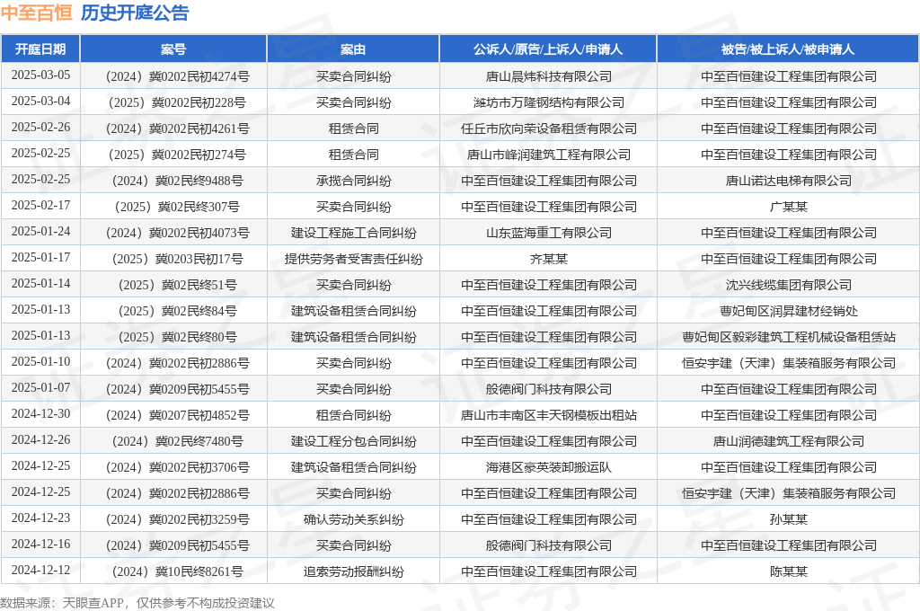 本站消息,根据天眼查APP显示,近日公布了一则中至百恒建设工程集团有限公司作为被告/被上诉人的开庭公告,详细内容如下: